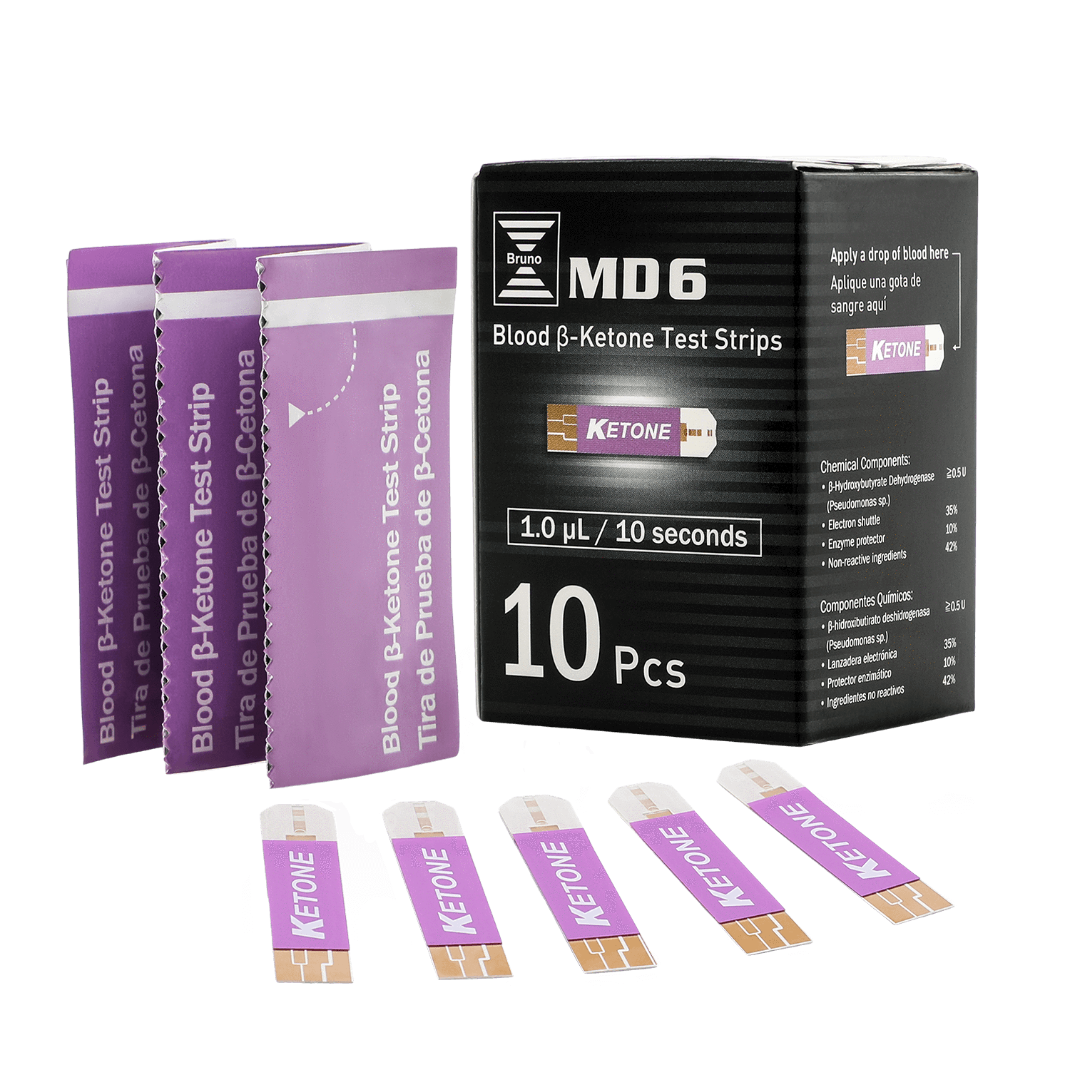 Bruno MD Ketone Test Strips make accurate in-home ketone testing easy and affordable. Paired with the Bruno MD6 monitor, you'll get lab-level results in just five seconds so you can quickly monitor ketone levels to help make healthier lifestyle choices, improve your diet, and stay in ketosis.