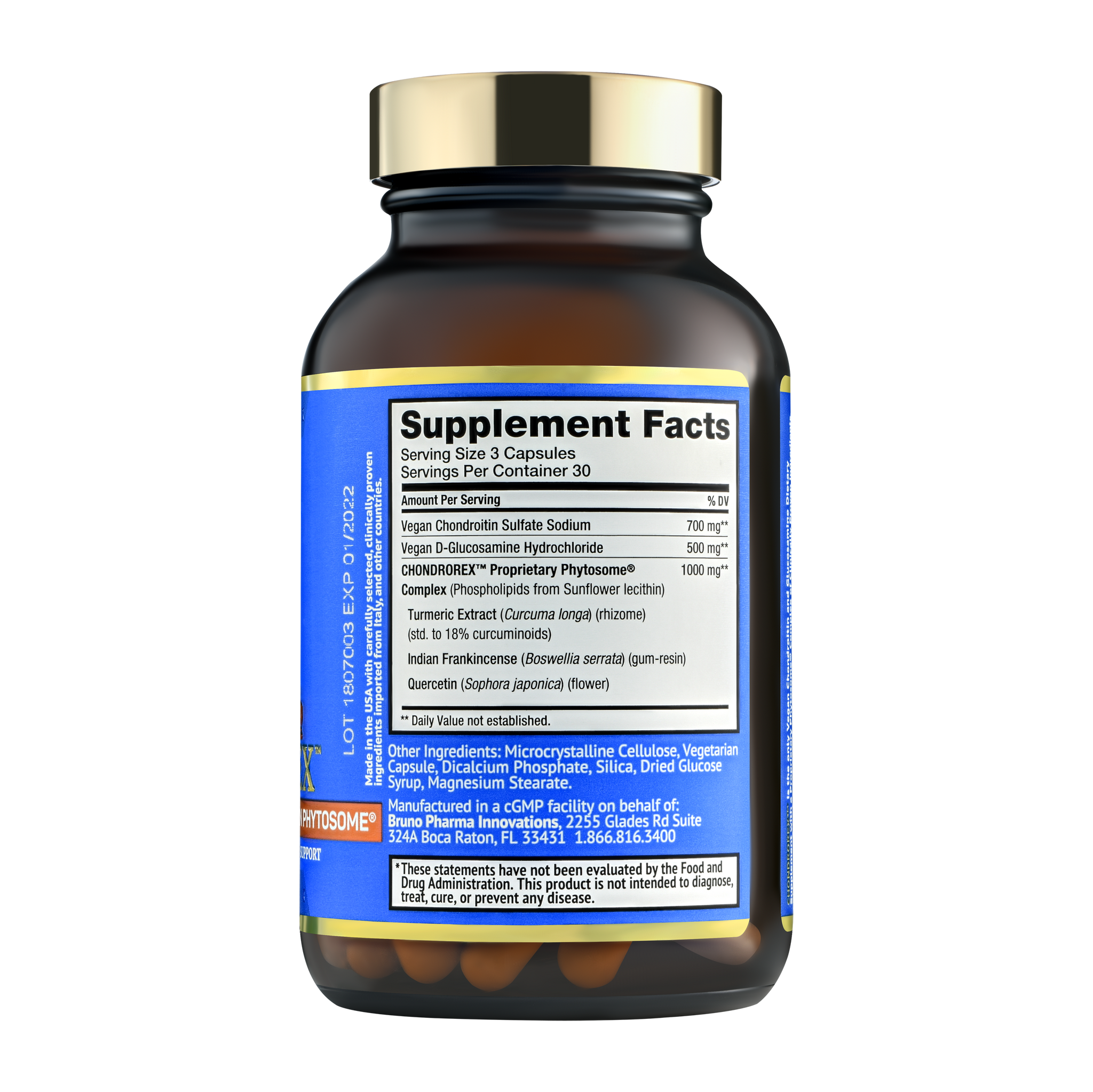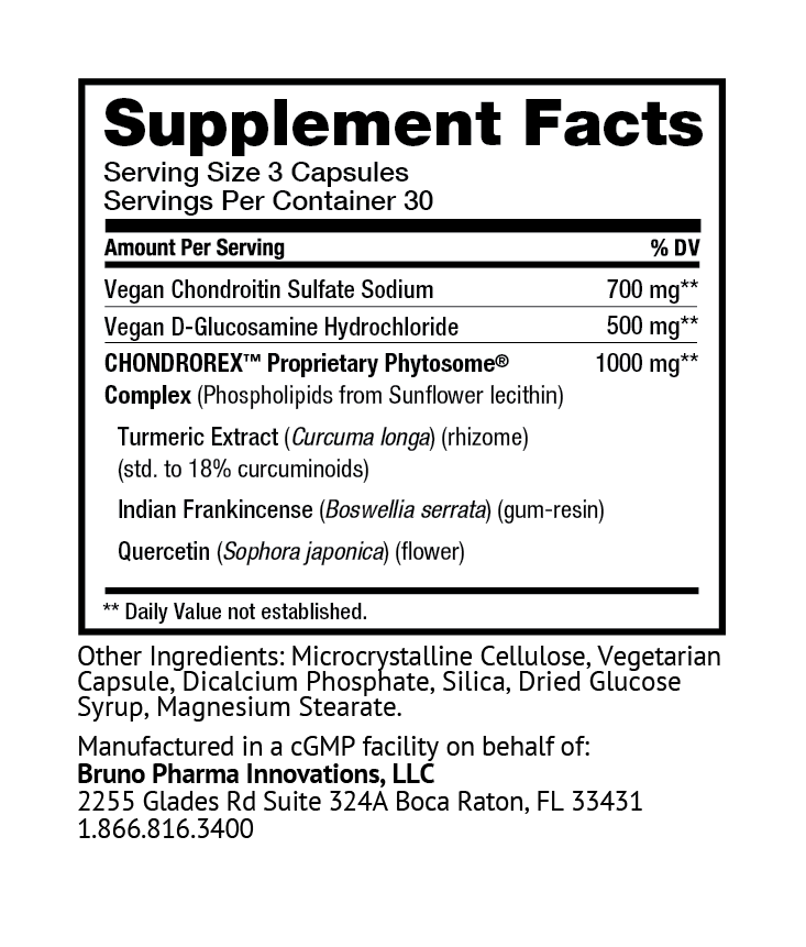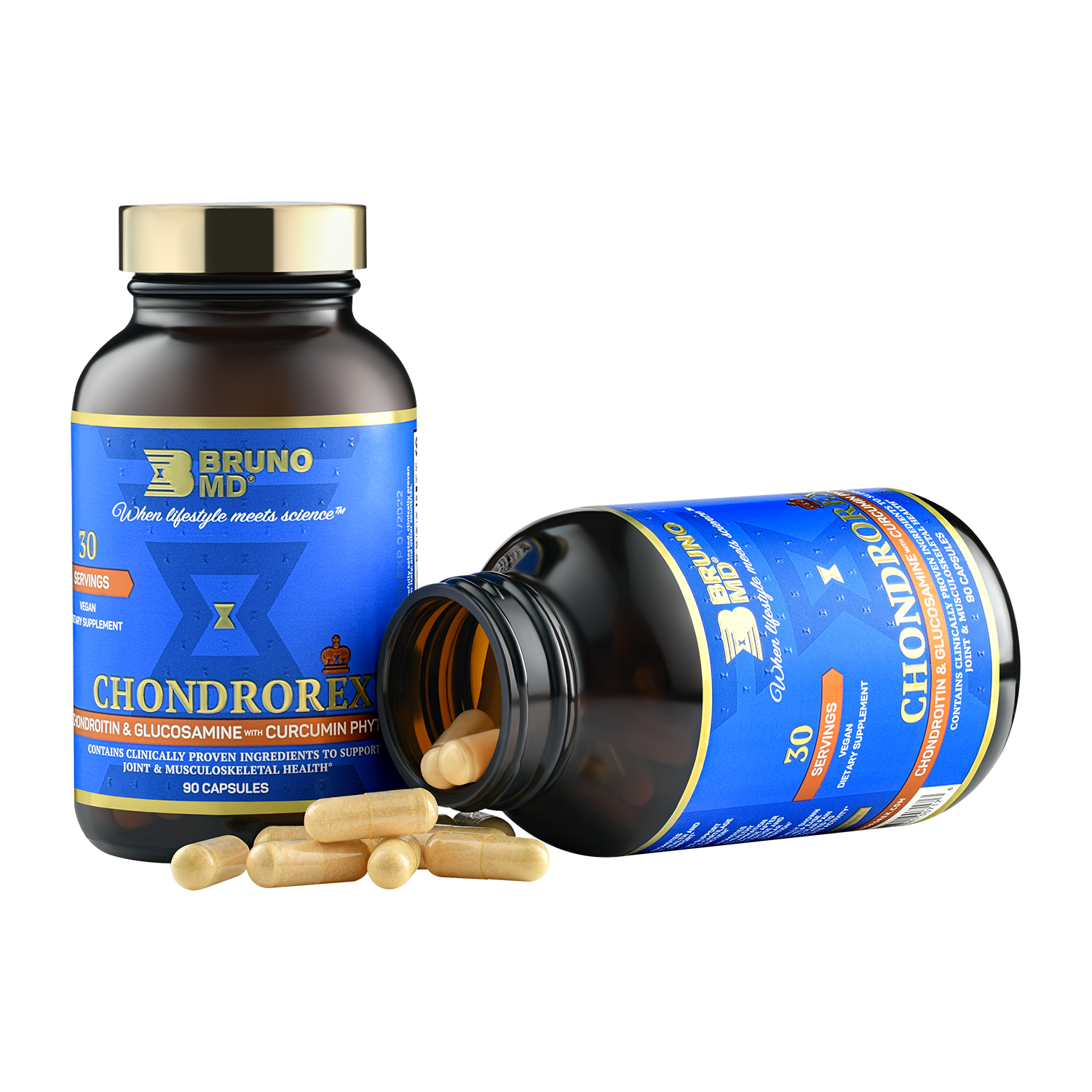 BRUNO MD CHONDROREX® is the only Vegan Chondroitin & Glucosamine Dietary Supplement designed to support joint & musculoskeletal health.